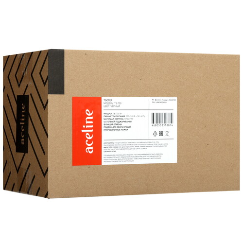 Тостер Aceline TS-700 имеет 6 степеней прожарки, это позволяет регулировать цвет и толщину корочки кусков хлеба в зависимости от личных предпочтений. Модель имеет защиту от перегрева, которая не допускает превышения допустимой температуры. В корпусе есть отсек для хранения шнура, позволяет защитить кабель от износа или повреждений при хранении, переноске.