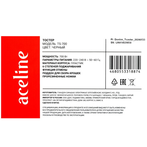 Тостер Aceline TS-700 черный [9089020]