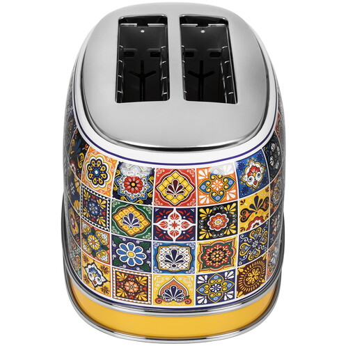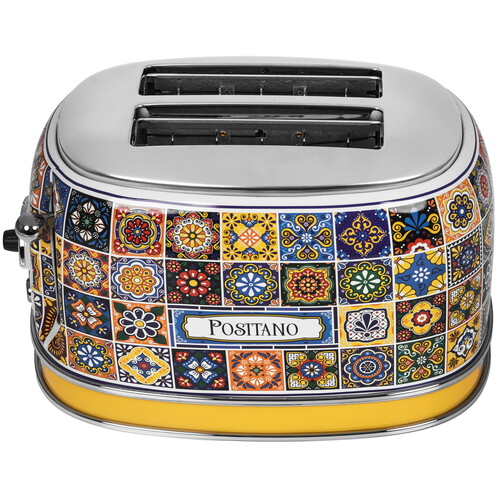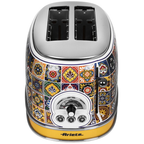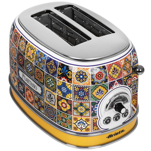 Тостер Ariete 00C01551PAR0 Positano выполнен в металлическом корпусе с красочным рисунком. Для одновременного приготовления двух тостов предусмотрены раздельные отделения. Система автоматического выброса выталкивает ломтики вверх и упрощает их извлечение. В тостере реализованы функции подогрева и размораживания.