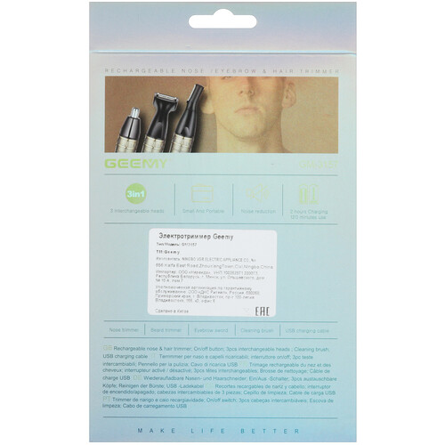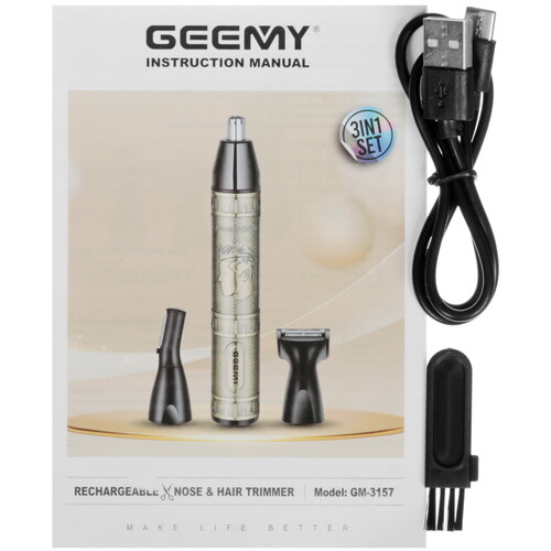 Многофункциональный триммер Geemy GM-3157- это удобный и безопасный инструмент для ухода за собой. Модель оснащена сменными насадками, которые позволяют выполнять различные задачи.