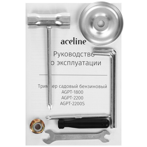 Ручка T-образной формы регулируется по высоте и обеспечивает удобную настройку положения инструмента. В качестве сменной оснастки в зависимости от густоты растительности на участке могут использоваться нейлоновая леска диаметром 2.5 м и 3-лопастной нож диаметром 255 мм. Плечевой ремень равномерно распределяет нагрузку и повышает комфорт в эксплуатации триммера Aceline AGPT-1800.