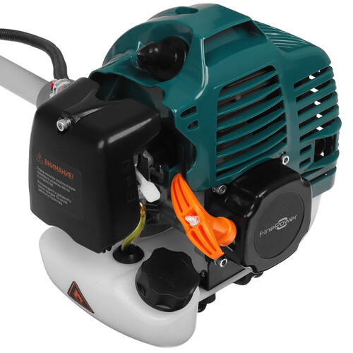 FinePower GTP243 с 2-тактным двигателем дополнен праймером и системой легкого старта для ускорения процесса запуска. Точные пропорции смеси из бензина и масла для исправной работы триммера указаны в инструкции. Модель можно оснащать леской диаметром 2.4 мм для скашивания молодой и небольшой травы или ножом шириной 25.5 см для срезания жесткого сухостоя и высоких сорняков. Рабочая головка с защитным кожухом не дает камням и прочему мусору отлетать в сторону оператора.