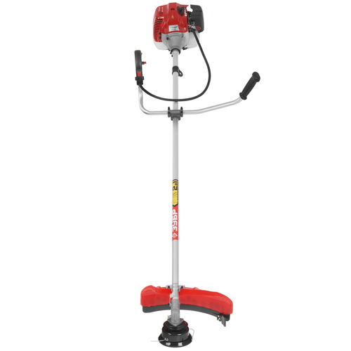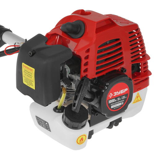 Прибор Зубр КРБ-1000 легко удерживается благодаря велосипедной ручке с настройкой по высоте и системе гашения вибрации. 2-тактный двигатель с мощностью 1000 Вт быстро разгоняется до скорости 9000 об/мин, дополняется системой быстрого запуска и топливным баком на 950 мл. Защитная скоба не даст камням и мусору лететь в вашу сторону, но в целях безопасности работать следует в плотном костюме, закрытой обуви и защитных очках.