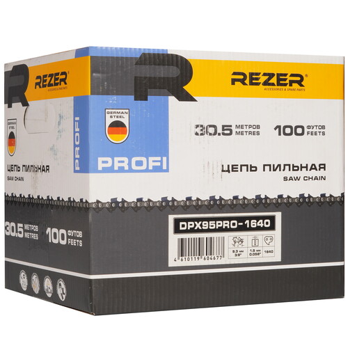 100-футовая пильная цепь Rezer DPX95PRO-1640 – оснащение для бензиновых и электрических пил разных производителей. Модель оснащена чипперными зубьями. Общее количество звеньев – 1640. Шаг цепи Rezer DPX95PRO-1640 равен 9.3 мм, а ширина паза – 1.5 мм.
