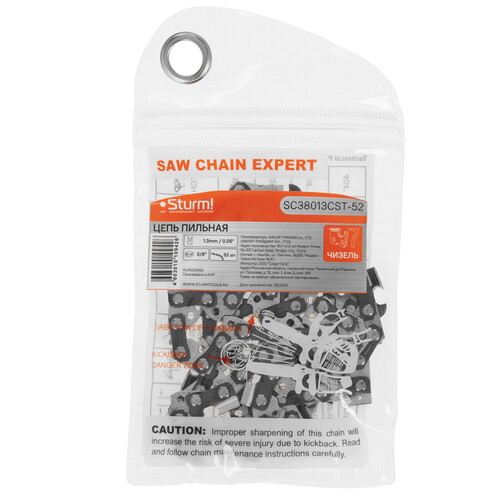 Пильная цепь Sturm! SC38013CST-52. Режущие зубья изготовлены из специальной высококачественной стали и имеют продолжительный срок службы. Заточка на высокоточном оборудовании. Низкая вибрация для комфортной работы