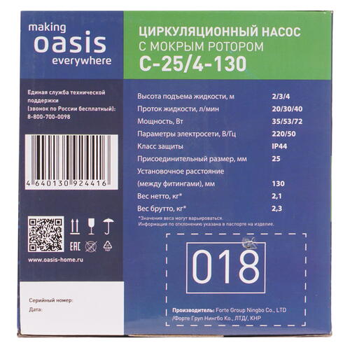 Циркуляционный насос Oasis C 25/4-130 [9970385]