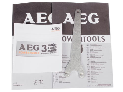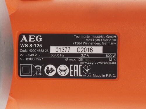 В AEG WS8-125 есть функция блокировки шпинделя. Благодаря ей удается быстрее выполнить замену оснастки. В конструкции установлен кожух. Он защищает от пыли и искр, исключает получение повреждений при работе.