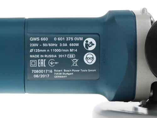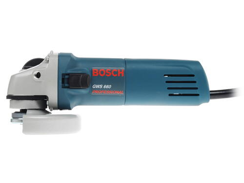 Bosch GWS 660 оснащена двухпозиционной рукояткой и шпинделем с резьбой M14. Вал машины способен вращаться со скоростью до 11000 об/мин, при этом потребляется мощность 660 Вт. Максимальный диаметр диска, который можно установить на этот инструмент, составляет 125 мм.