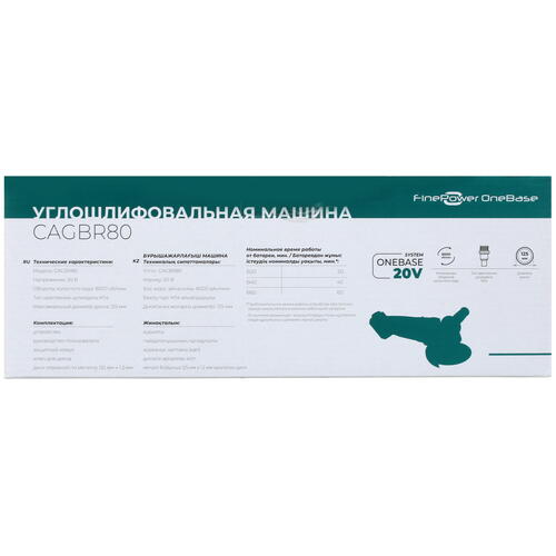 Углошлифовальная машина (УШМ) FinePower CAGBR80 OneBase20 , Без ЗУ, Без АКБ [4748631]