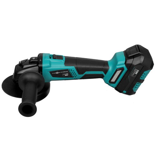 FinePower OneBase CAGBL100 оснащена двухпозиционной прорезиненной ручкой для удобного удержания в любом положении. В целях безопасности есть защита от перегрузок, блокировка случайного включения и тормоз двигателя. Фиксатор на корпусе облегчает выполнение непрерывных работ. УШМ оснащена ЗУ и 2 АКБ, выдерживающими 50 минут без подзарядки. Инструмент идет в комплекте с кейсом для хранения, защитным кожухом, диском по металлу и ключом.