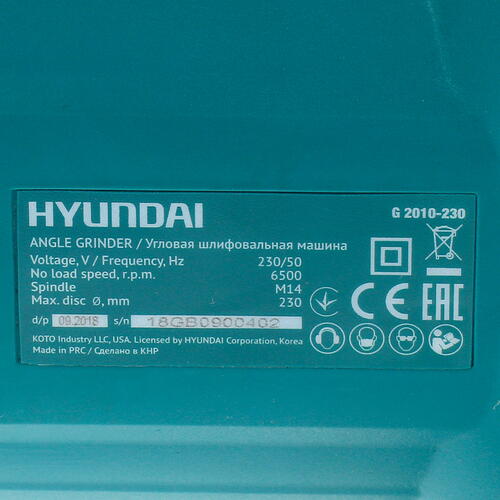 Углошлифовальная машина (УШМ) Hyundai G 2010-230 [8145324]