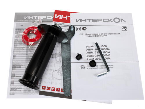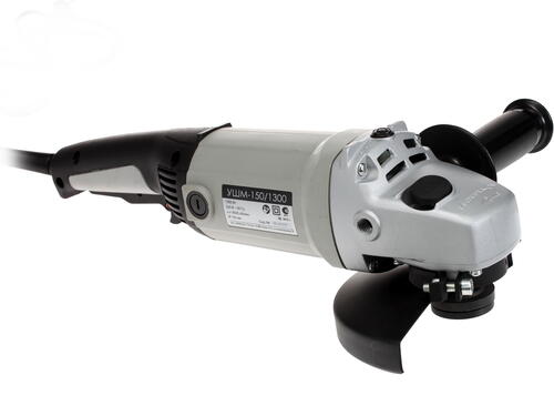 Кнопка стопора, блокирующая шпиндель, позволяет быстро провести замену диска. Шайба для фиксации от Интерскол рассчитана посадочное отверстие 22.2 мм. При заклинивании диска открутить гайку можно без использования кнопки блокировки, удерживая шпиндель рожковым ключом. Инструмент имеет две рукоятки: основную для правой руки с клавишей пуска и дополнительную съемную для левой руки с возможностью установки в одном из трех предусмотренных положений. Модель Интерскол УШМ-150/1300 – оптимальный выбор для домашней и небольшой профессиональной мастерской.