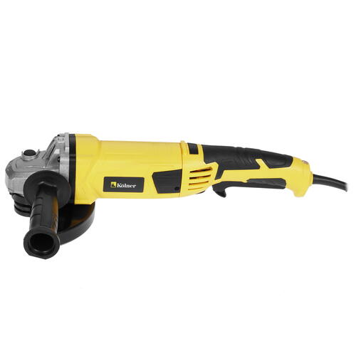Мощность двигателя Kolner KAG 150/1400 достигает 1400 Вт. Наряду с максимальной скоростью вращения 9000 об/мин это говорит о том, что инструмент рассчитан на высокие нагрузки. Наличие кнопки блокировки шпинделя способствует более быстрой и легкой смене диска. Кроме того, это дает дополнительную защиту пользователю от непреднамеренного включения УШМ. Диаметр диска, который подходит для использования в УШМ, составляет 150 мм. Устройство весит 2.4 кг и для удобства работы использует прорезиненные накладки на рукоятке.