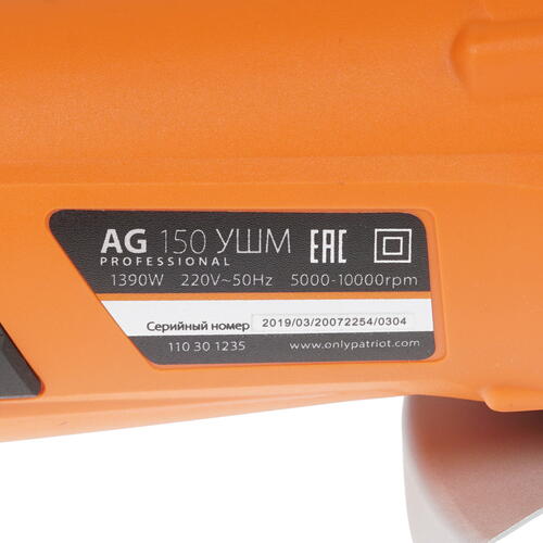 Машина углошлифовальная Patriot AG 150 поддерживает работу с отрезным или шлифовальным диском диаметром 150 мм, имеющим посадочное отверстие 22.23 мм. Предусмотренная в нем функция фиксации шпинделя способствует удобству замены рабочей оснастки. Предназначенный для выполнения зачистных, отрезных и шлифовальных работ инструмент снабжен электродвигателем мощностью 1390 Вт и рассчитан а питание от сети 220 В. К розетке он присоединяется посредством 2-метрового кабеля.