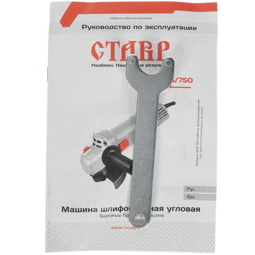 Инструмент Ставр МШУ-115/750 со шпинделем, имеющим резьбу M14, способствует его надежной фиксации. Оборудование действует от электросети благодаря наличию прочного 3-метрового кабеля. Устройство оснащено пылезащищенным корпусом и поставляется с запасной ручкой, угольными щетками и ключом для удобной смены принадлежностей.