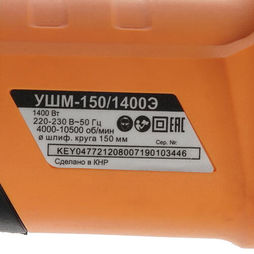 Ø диска max - 150 мм, питание - от сети, регулировка оборотов, 1400 Вт, 2.6 кг