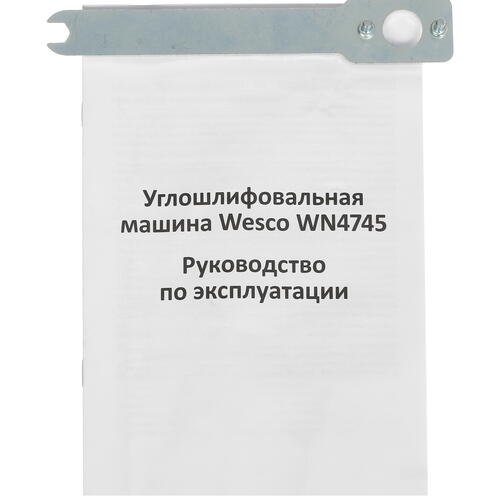 Wesco WN4745 оснащен удобной кнопкой блокировки случайного включения. Двигатель мгновенно прекращает работу при заклинивании диска. Это защищает оператора от травм, а обрабатываемую поверхность от брака. Инструмент идет в комплекте с жестким кожухом и ключом для смены оснастки.
