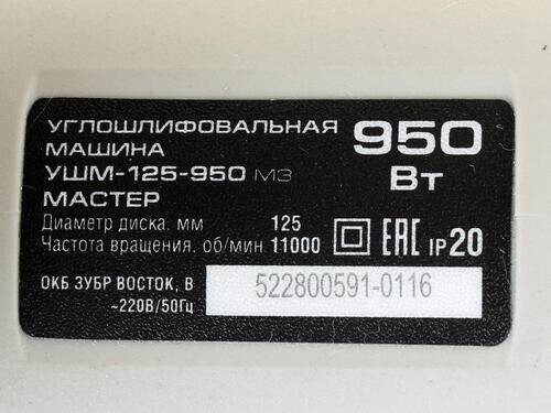 Углошлифовальная машина (УШМ) Зубр УШМ-125-950 М3 [1070101]