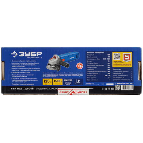 Углошлифовальная машина (УШМ) Зубр УШМ-П125-1500 ЭПСТ [9963643]