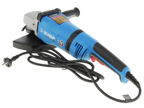 В Зубр УШМ-П230-2400 ПВ установлен защитный кожух диска для максимальной безопасности во время выполнения работ. Монтаж данного элемента происходит без использования ключа. Питание устройство получает от сети, провод на 3 метра не будет сильно ограничивать вас во время работ.