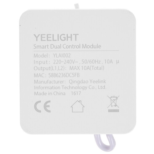 Управляемое реле Yeelight Smart Dual Control Module YLAI002 позволяет организовать дистанционное управление подключенными к электрической сети приборами. Это интеллектуальное устройство обладает компактными размерами и выполнено в корпусе из термостойкого пластика. Для беспроводной синхронизации используются интерфейсы Bluetooth и Wi-Fi, а управление осуществляется с помощью фирменного приложения на смартфоне и голосовых помощников. Реле Yeelight Smart Dual Control поддерживает 2 канала и отличается максимально допустимым током нагрузки 10 А.