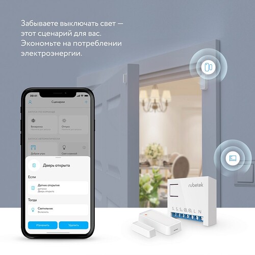 Датчик мгновенно реагирует на открытие двери или окна, на котором он установлен, и отправляет оповещение на смартфон. Устройство можно закрепить на любой открывающейся поверхности.