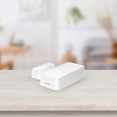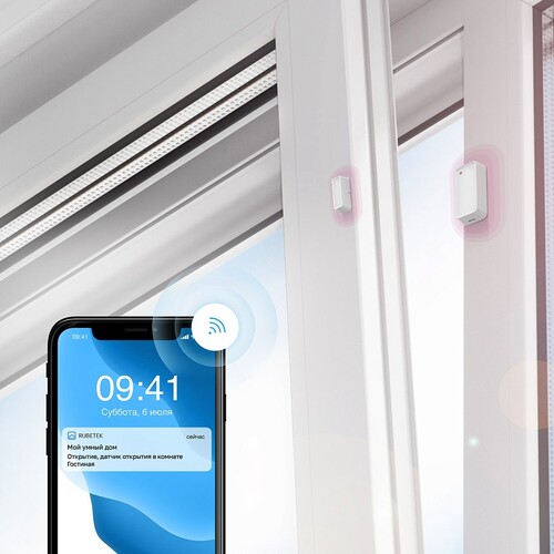 Устройство состоит из двух частей — датчика и магнита. Датчик крепится на неподвижную поверхность (например, оконную раму), магнит — на подвижную поверхность. Если датчик находится в зоне действия магнитного поля, он замыкает цепь — датчик закрыт. Открытие створки окна или двери размыкает цепь, и датчик фиксирует открытие. В этом случае устройство мгновенно передаст сигнал тревоги приёмнику, и вам придет уведомление на смартфон.
