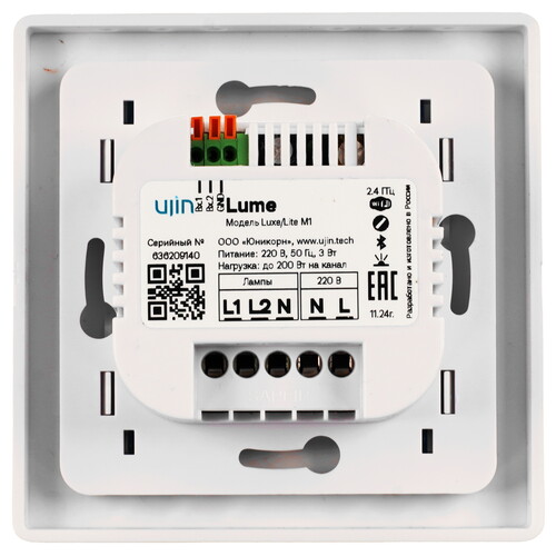 Диммер электрический UJIN модель Luxe/lite M1 монтируется в обычный подрозетник или в стену с помощью винтов. Прибор позволяет дистанционно управлять освещением, менять яркость источников света. Также устройство может улавливать угарный газ, контролировать состояние микроклимата. А благодаря датчику движения умная розетка способна зафиксировать наличие посторонних лиц в помещении и уведомить об этом пользователя.