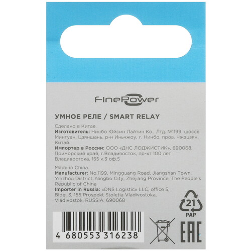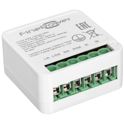 Управляемое реле FinePower SR-1 в компактном белом корпусе из термостойкого пластика позволяет сделать электроприбор компонентом умного дома и обеспечивает его удаленное включение и отключение. Модуль использует Wi-Fi в качестве протокола передачи данных и поддерживает управление через мобильные приложения Houself и Smart Life. Он может одновременно управлять двумя электроприборами, такими как осветительные устройства или электроприводы штор.