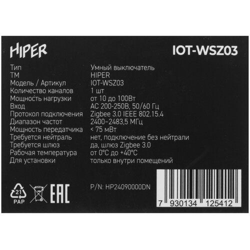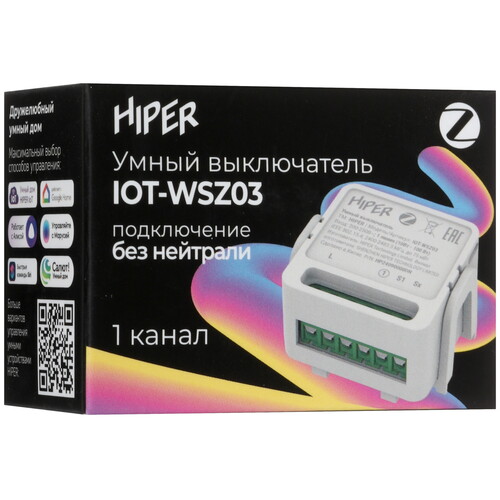Управляемое реле HIPER IoT Switch IOT-WSZ03 без нуля - это одно из устройств экосистемы умного дома HIPER. Модуль подключается к электропроводке и управляет питанием присоединенного устройства — люстры, розетки или другого прибора. Вместе с модулем обычное устройство становится умным: им можно управлять дистанционно с помощью нашего приложения HIPER IoT из любой точки планеты, а также с помощью голосовых помощников.