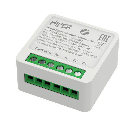 Умный выключатель HIPER IoT Switch M02 можно подключить к системе «умного» дома, связав его с другими датчиками или таймером. Таким образом получается настроить исполнение любого сценария (включение/выключение света в заданное время). Технические параметры умного выключателя предусматривают максимальную нагрузку по мощности подключения в 2500 Вт, а по току - 10 А. В случае отключения электричества умный выключатель сохраняет предыдущее состояние (вкл/выкл) и восстанавливает его при подаче тока.