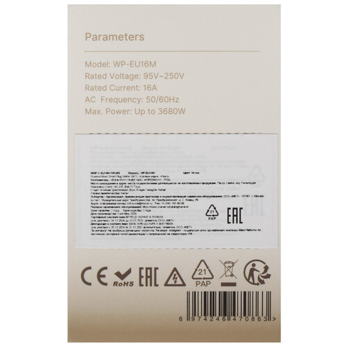 16 А, 95 - 245 В, 4 кВт, Wi-Fi, помощник-Alexa, Google Ассистент, Алиса, белый