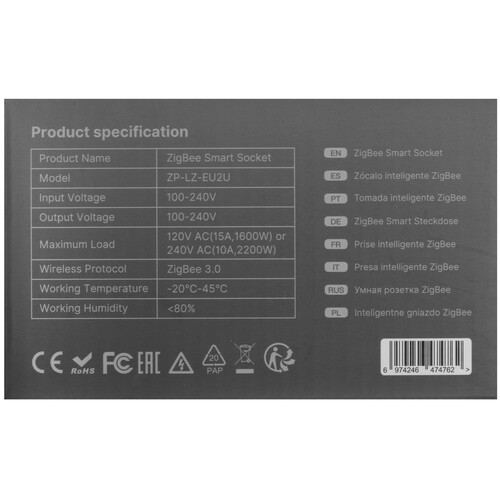16 А, 95 - 245 В, 4 кВт, Zigbee, помощник-Alexa, Google Ассистент, Алиса, белый