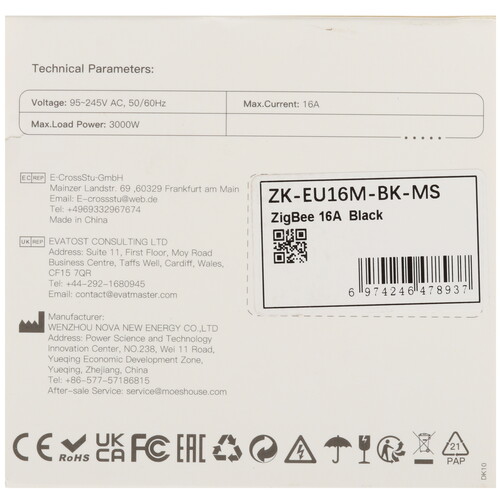 16 А, 95 - 245 В, 3 кВт, Zigbee, помощник-Alexa, Google Ассистент, черный