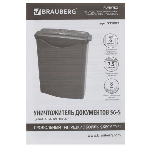 Уничтожитель бумаг BRAUBERG S6-S [1246547]