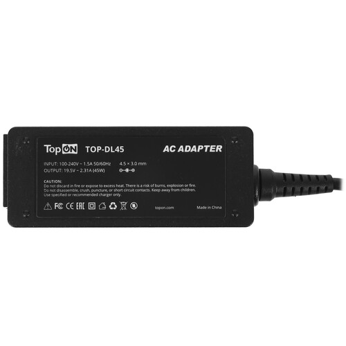 Адаптер питания TopON TOP-DL45 совместим с ноутбуками Dell, в которых установлен разъем подключения под штекер с размерами 4.5x3 мм. Благодаря параметрам силы тока 2.31 А, напряжения 19.5 В и выходной мощности в пределах 45 Вт обеспечивается бесперебойная подача энергии в процессе зарядки аккумулятора. Адаптер питания TopON TOP-DL45 оснащен застежкой-липучкой для компактного хранения кабеля, его защиты от спутывания и повреждения. Световой индикатор на блоке показывает текущее состояние зарядки.