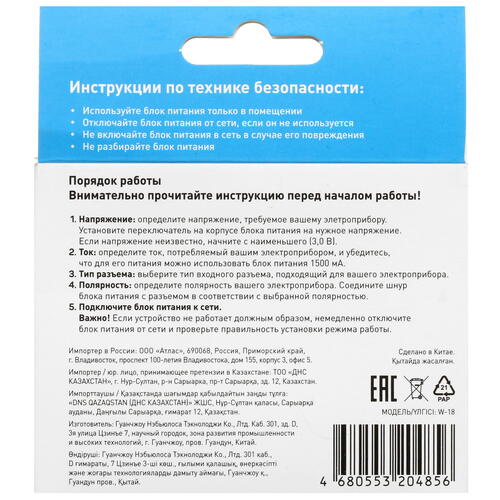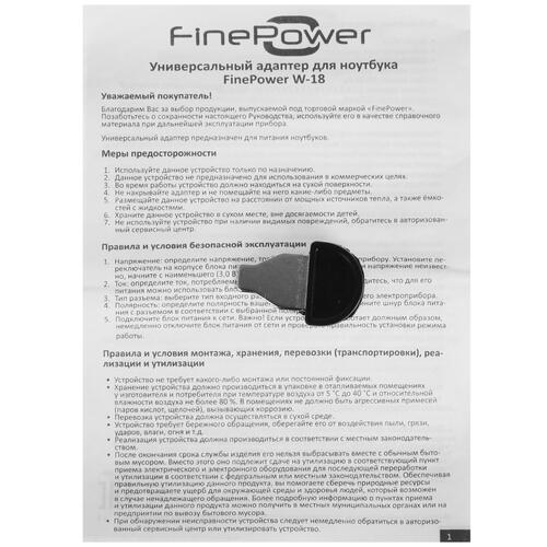 Адаптер питания сетевой FinePower W-18 [4887020]