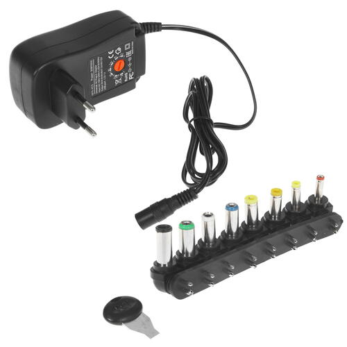 Корпус адаптера питания Gembird NPA-AC5 изготовлен из качественного пластика и отличается высокой прочностью. Классическая моноблочная конструкция позволяет легко подключать модель прямо в розетку, а кабель длиной 1 метр сделает использование удобным. Адаптер поддерживает ручную регулировку напряжения при помощи поворотного переключателя. Комплектация модели включает в себя 8 разъемов разного размера.