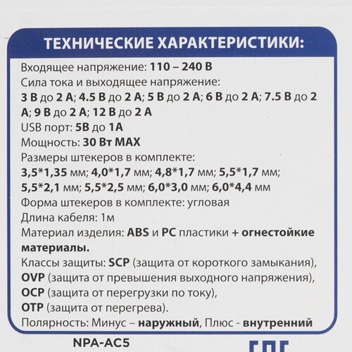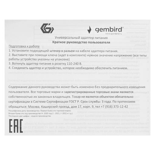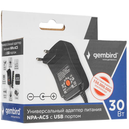 Адаптер питания сетевой Gembird NPA-AC5 [4863718]