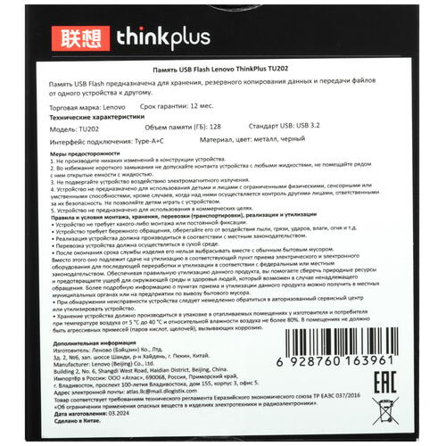 Память OTG USB Flash 128 ГБ Lenovo ThinkPlus TU202 [36004320] [5444584]