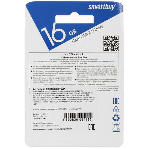 USB-накопитель Smartbuy Twist [SB016GB2TWP] демонстрирует емкость 16 ГБ, обеспечивая хранение необходимых вам файлов мультимедиа, приложений и документов. В устройстве предусмотрен сдвижной колпачок, прикрывающий коннектор и защищающий его от повреждений и попадания загрязнений. На колпачке присутствует отверстие для ремешка, позволяющее брать накопитель с собой как брелок.