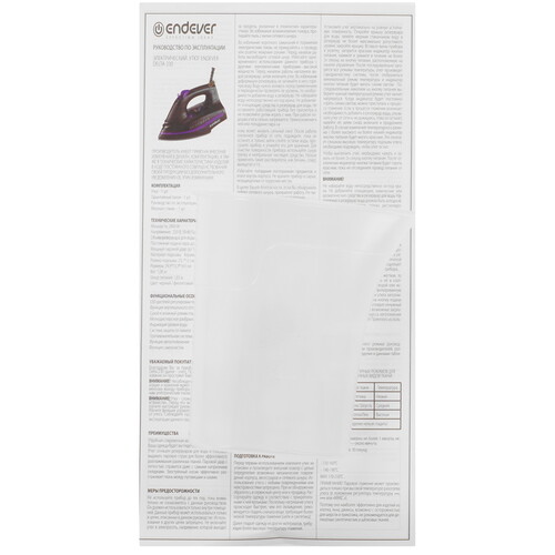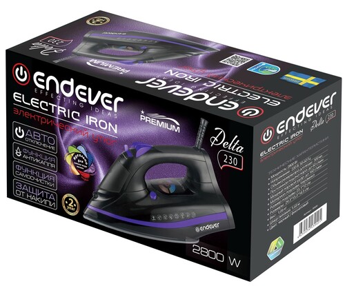 Delta-230 - это утюг, который не просто гладит, он преображает процесс ухода за одеждой в настоящее удовольствие. Великолепный дизайн и мощные технологии делают его незаменимым аксессуаром в вашем доме. С мощностью 2800 Вт, Delta-230 готов к работе в считанные секунды. Подача пара до 60 г/мин и паровой удар до 160 г/мин позволяют справиться с самыми сложными складками и тканями. Это утюг для тех, кто ценит быстроту и качество. Керамическая подошва обеспечивает идеальное скольжение и равномерное распределение тепла. Ее размер - 23,1x12 см - делает глажение крупных поверхностей легким и эффективным. Delta-230 предлагает множество инновационных функций, включая систему защиты от накипи и противокапельную систему, которые обеспечивают долгий срок службы устройства. Функция автоотключения гарантирует безопасность. Утюг поддерживает сухой и влажный режим глажения, а также мелкодисперсное разбрызгивание для устранения мелких дефектов на ткани. Регулировка температуры с LED дисплеем позволяет настроить утюг под каждый тип ткани. С баком вместимостью 300 мл, Delta-230 позволяет гладить долго без перерывов на долив воды. Индикация уровня воды всегда дает вам точную информацию. Endever Delta-230 - это не просто утюг, это произведение искусства, которое облегчит вам уход за одеждой и добавит стиля в ваш дом. Позвольте себе наслаждаться моментами ухода за собой и своей одеждой с Delta-230.