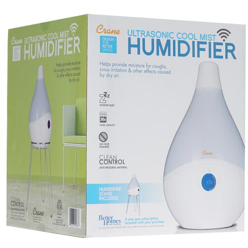 Увлажнитель воздуха Crane EE-5303W благодаря элегантному белому корпусу гармонично вписывается в домашний интерьер. Напольное устройство потребляет 19 Вт, действует непрерывно в течение 36 часов и уверенно обслуживает комнату до 46 кв.м. Ультразвуковая система дополнена емкостью с антибактериальным покрытием на 6.82 литра воды, которая расходуется со скоростью 356 мл/ч. Привлекательно, что доливать воду можно сверху, не отключая прибор.