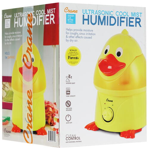 Увлажнитель воздуха Crane EE-6369 "Утенок" украсит детскую комнату, а при этом улучшит состояние микроклимата. Использование данного прибора особенно актуально зимой, когда включенные на полную мощность батареи отопления пересушивают воздух в доме. Настольный прибор увлажняет воздух по ультразвуковому принципу, а также дополняется удобным механическим управлением. Устройство способно работать непрерывно в течение суток, а затем отключаться автоматически.