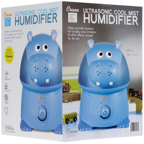 Увлажнитель воздуха Crane EE-8245 "Бегемот" – привлекательный настольный прибор для детской комнаты. Устройство потребляет 19 Вт и уверенно обслуживает комнату до 23 кв.м. Прибор способен работать непрерывно в течение суток, а также дополнен функцией автоотключения.