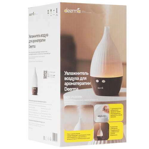 Увлажнитель воздуха Deerma DEM-PX300W представлен в белом настольном корпусе с кнопочным управлением. 8 режимов подсветки выполняют функцию ночника или декоративного освещения. Модель оснащена верхним заливом воды и блокировкой работы с пустой емкостью.
