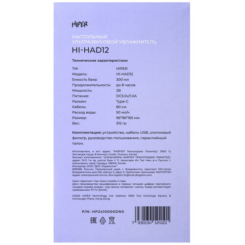 Увлажнитель воздуха HIPER HI-HAD12 [5459737]