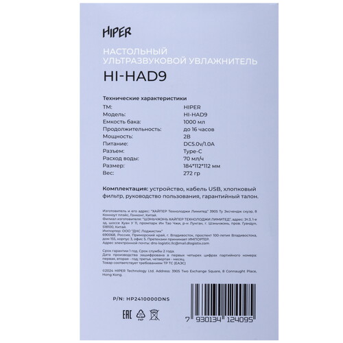 Увлажнитель воздуха HIPER HI-HUD9 [5459735]