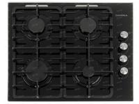 конфорок - 4 шт, решетки - чугун, панель - закаленное стекло, электроподжиг, газ-контроль, черный