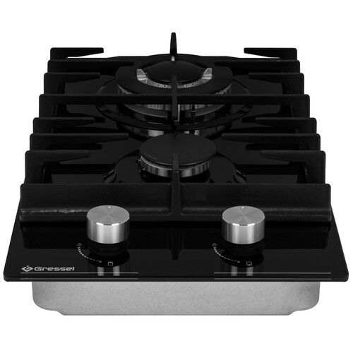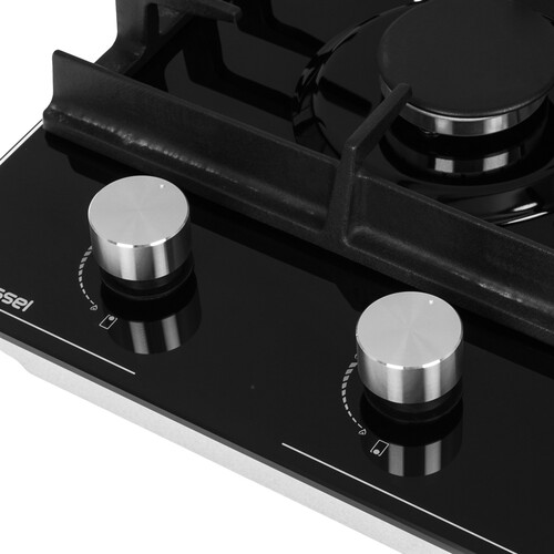 конфорок - 2 шт, решетки - чугун, панель - закаленное стекло, электроподжиг, газ-контроль, черный